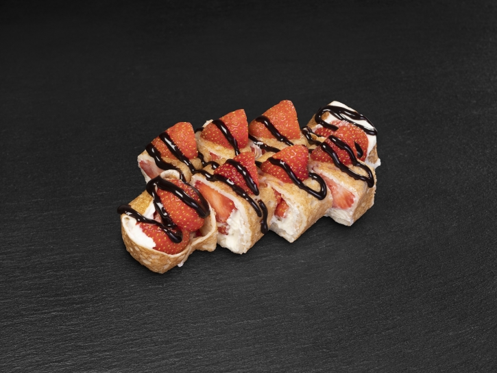 *Sezonas rollsPlānā pankūka, saldais krēmsiers, zemenes, šokolāde