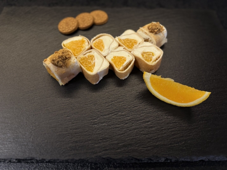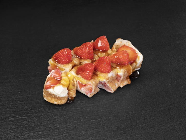 *Sezonas rollsPlānā pankūka, saldais krēmsiers, zemenes, mango.