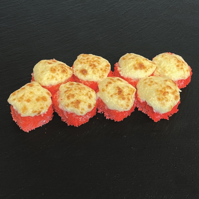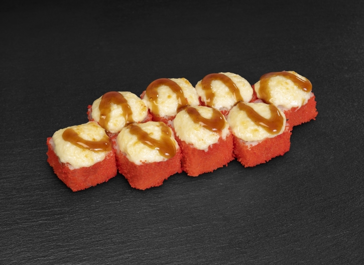 63Tīģergarneles, krēmsiers, siers, Мasago ikri, Teryaki mērce, majonēze
