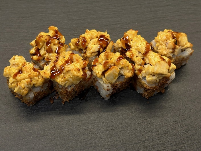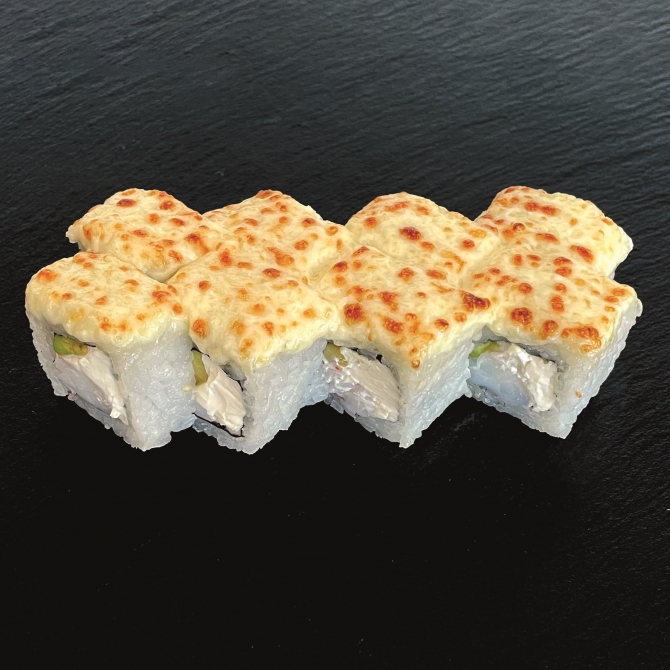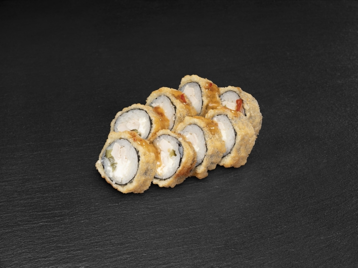 🌶️Krēmsiers, vistas fileja, gurķis, salātlapa, Masago ikri, majonēze, asā mērce, koriandrs.