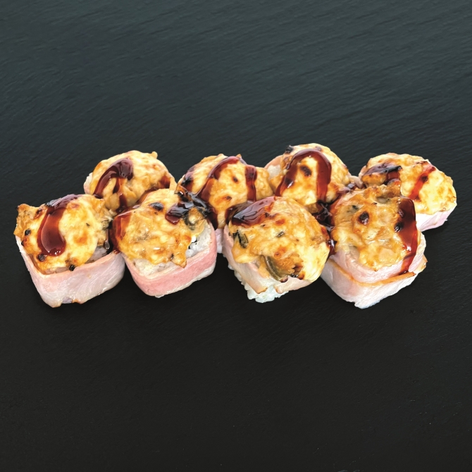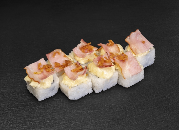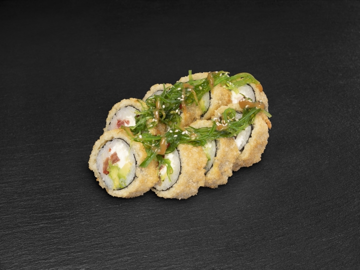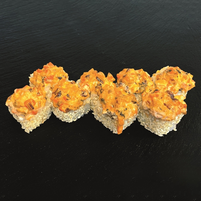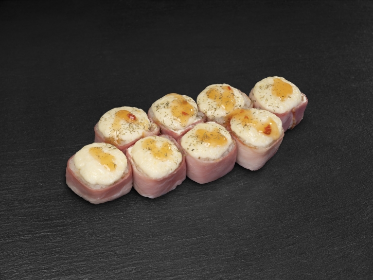 🌶️Krēmsiers, gurķis, sezama sēklas, Masago ikri, majonēze, asā mērce, bekons
